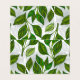 Seamless pattern of green patterned tea leaves and sprouts on a light background. Tea design.