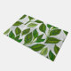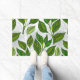 Seamless pattern of green patterned tea leaves and sprouts on a light background. Tea design.