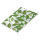 Seamless pattern of green patterned tea leaves and sprouts on a light background. Tea design.