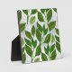 Seamless pattern of green patterned tea leaves and sprouts on a light background. Tea design.