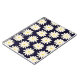 Seamless pattern with hand drawn flowers in cream and yellow on dark blue background.
