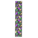 Seamless pattern of bright purple, green, and gold feathers on black Mardi Gras background. Design for the Mardi Gras holiday.