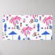 Seamless pattern with palm trees pineapples coconu poster