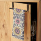This kitchen towel features flowers and leaves in shades of pink and blue on a cream-coloured background.