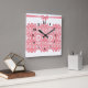 Seamless pink romantic elegant lace lacy bow white square wall clock