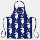 Endless and seamless pattern of white seahorses silhouettes over a navy ocean blue background.