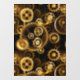 Seamless, metal, brass, gold gears on rusty dark background. Steampunk style.