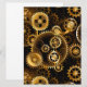 Seamless, metal, brass, gold gears on rusty dark background. Steampunk style.