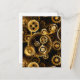 Seamless, metal, brass, gold gears on rusty dark background. Steampunk style.