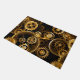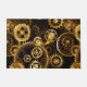 Seamless, metal, brass, gold gears on rusty dark background. Steampunk style.