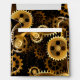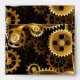 Seamless, metal, brass, gold gears on rusty dark background. Steampunk style.