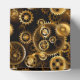 Seamless, metal, brass, gold gears on rusty dark background. Steampunk style.