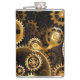 Seamless, metal, brass, gold gears on rusty dark background. Steampunk style.