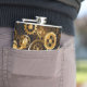 Seamless, metal, brass, gold gears on rusty dark background. Steampunk style.