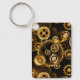 Seamless, metal, brass, gold gears on rusty dark background. Steampunk style.