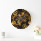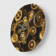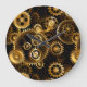 Seamless, metal, brass, gold gears on rusty dark background. Steampunk style.