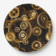 Seamless, metal, brass, gold gears on rusty dark background. Steampunk style.
