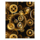 Seamless, metal, brass, gold gears on rusty dark background. Steampunk style.