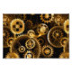 Seamless, metal, brass, gold gears on rusty dark background. Steampunk style.