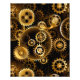 Seamless, metal, brass, gold gears on rusty dark background. Steampunk style.