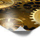 Seamless, metal, brass, gold gears on rusty dark background. Steampunk style.