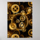 Seamless, metal, brass, gold gears on rusty dark background. Steampunk style.