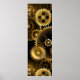 Seamless, metal, brass, gold gears on rusty dark background. Steampunk style.
