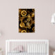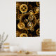 Seamless, metal, brass, gold gears on rusty dark background. Steampunk style.