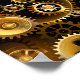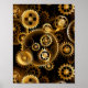 Seamless, metal, brass, gold gears on rusty dark background. Steampunk style.