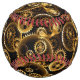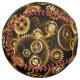 Seamless, metal, brass, gold gears on rusty dark background. Steampunk style.