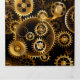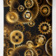 Seamless, metal, brass, gold gears on rusty dark background. Steampunk style.