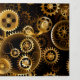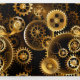Seamless, metal, brass, gold gears on rusty dark background. Steampunk style.