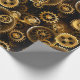 Seamless, metal, brass, gold gears on rusty dark background. Steampunk style.