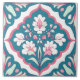 Seamless Teal Mint Pink and White Flowers Floral Ceramic Tile