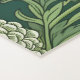 Seamless William Morris style wallpaper pattern featuring dense green foliage and large, rounded flowers in shades of lime green, off-white, and muted lavender against a dark emerald background.