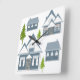 Seamless winter Merry Christmas landscape grey hou Square Wall Clock