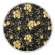 Seamless pattern with black and gold blooming orchids, richly decorated with black eucalyptus twigs and delicate jewellery pistachio twigs on black background. Golden jewellery Orchid.