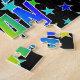This lively and exciting birthday-themed jigsaw puzzle design features the message "HAPPY BIRTHDAY, SEAN" with the characters having a colourful rainbow spectrum inspired gradient pattern, along with a vibrant stars background pattern. An exciting puzzle like this might be a fun way to send birthday wishes to somebody named Sean. [~Z0000468]