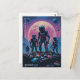 Search Squad Ω drops you straight onto a drifting junk planet where retro-futuristic robots sift through neon debris under a rain-soaked sky. Tattered space suits, glitch-lit skylines, and a battered mix of colour and chaos give this piece the look of a lost Japanese sci-fi poster from an alternate 1980s.