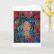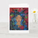 Unique and vibrant greeting card depicting a meditative woman with black, blue, and green hair fanning out from her face. Great for sending personal greetings or words of encouragement to those less mainstream individuals.