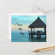"Seas the day" postcard with a stunning photograph of a tiki hut in Cambodia on a brilliant blue beach!