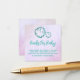 Baby shower with teal seashells and a lavender purple watercolor background
