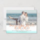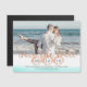 Magnetic save the date invitation with tropical aqua watercolor and rose coral seashell and text design. Personalise with your own photo and text as preferred.
