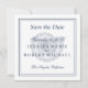 Navy blue text with classic border over seashell. Make a bold statement with this non-photo save the date. Elegant and simple"save the date" on a square format invitation. Details about your wedding on the front with website address on the back. Customise further with any details you like.