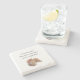 The coasters are gorgeous, a quality feel and heavy weight. They look like a precious archeological find. A rustic stone juxtaposed with a modern floral black and white print. I like the way the print goes slightly imperfect on the cut stone edges giving them a kind-of natural beauty.