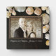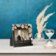 Newlywed photo gift idea. This standing photo frame with seashells and dark wood background (not real wood or shells, photo only) can be personalised with a photo of the couple and one line of text. Horizontal 8 by 10 size, the photo is printed onto the plaque and made to look like a framed image. This long-lasting photo gift is perfect for newlyweds or for a special anniversary. Of course it could be used for any occasion as well. A horizontal (landscape) photo works best. Include names and date of event along the bottom in modern script. The seashells and sand dollar border contain shells found on Florida beaches.
