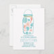 Romantic and casual beach wedding save the date postcard for destination, nautical and seaside weddings. Save the date with hand drawn mason jar and teal / turquoise seashells, sand dollars, coral starfish and seahorse couple. Please browse my store to find all beach mason jar wedding set products