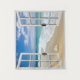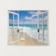 Tropical beach Ocean view, fake window scene, for a windowless office wall. Fun, realistic optical illusion scenic wall hanging for an office or study wall.