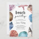 Graduation Beach Party invitation, framed with watercolor seashells and ocean creatures. "beach party" is hand lettered and the remaining wording is fully editable.