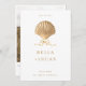 Announce your big day with this elegant gold seashell Save the Date, featuring a chic bow accent and timeless beach destination wedding aesthetic. Perfect for seaside celebrations with a touch of luxury and class.